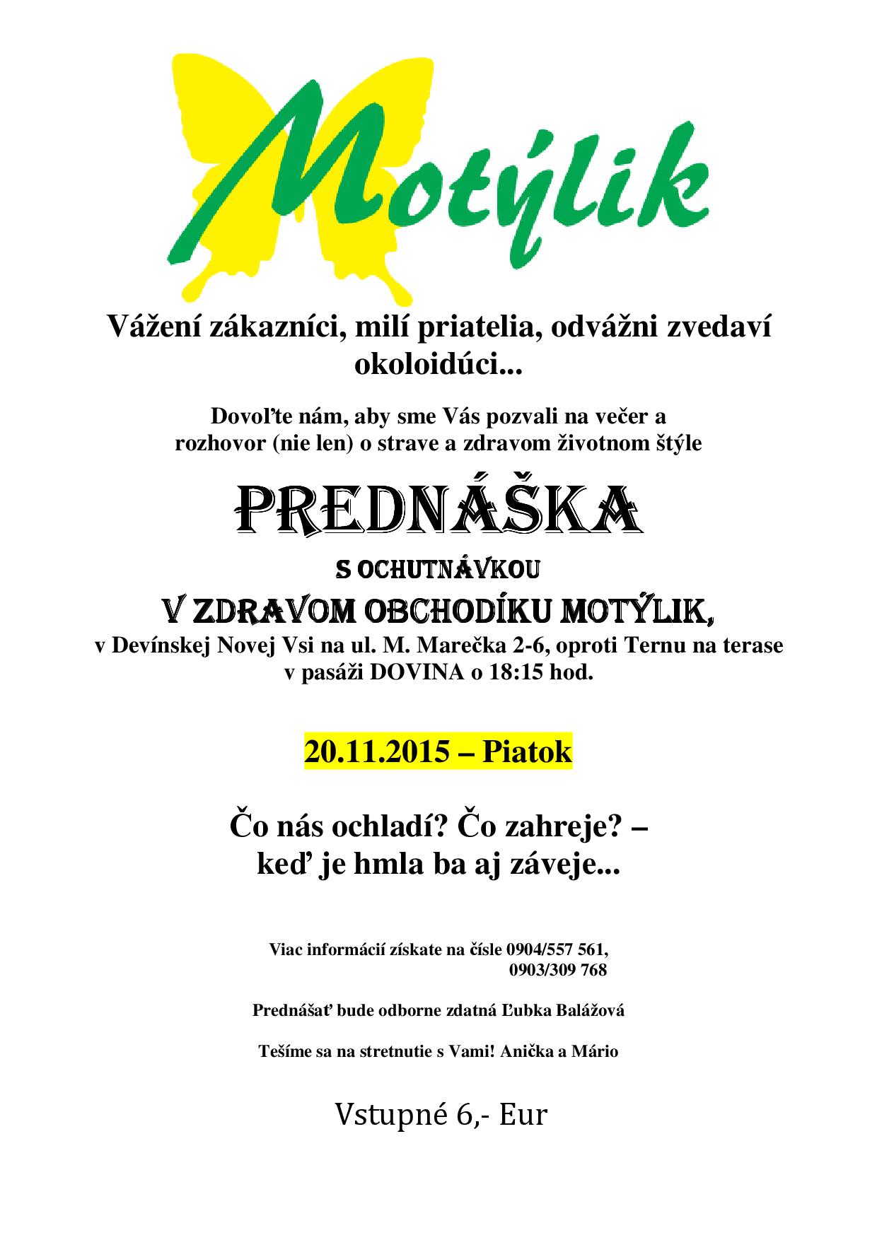 Motýlik DNV s.r.o., so sídlom M. Marečka 2, 841 08 Bratislava, IČO 54179025, zapísaná v Obchodnom registri ...