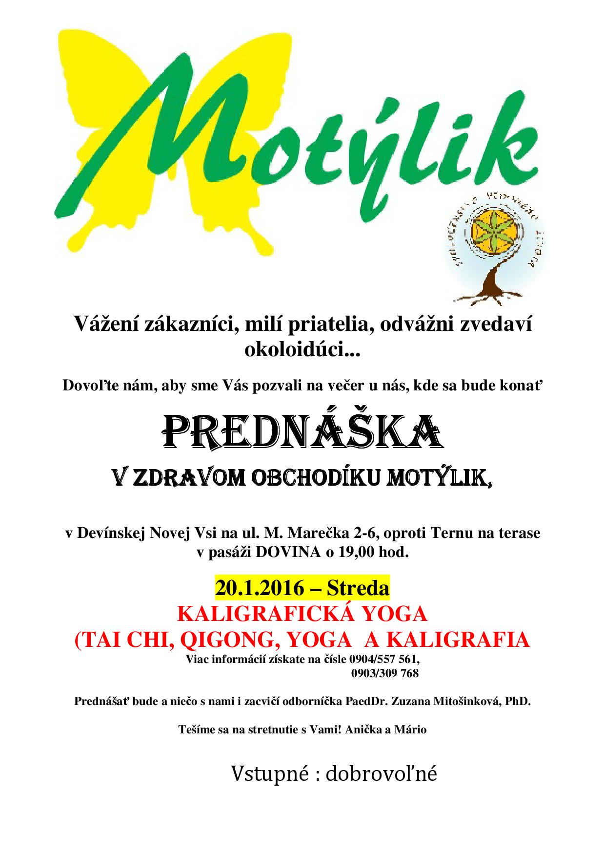 Zoznámte sa s kaligrafickou jogou. Malú ukážku môžte zažiť v Motýliku 20.1.2016